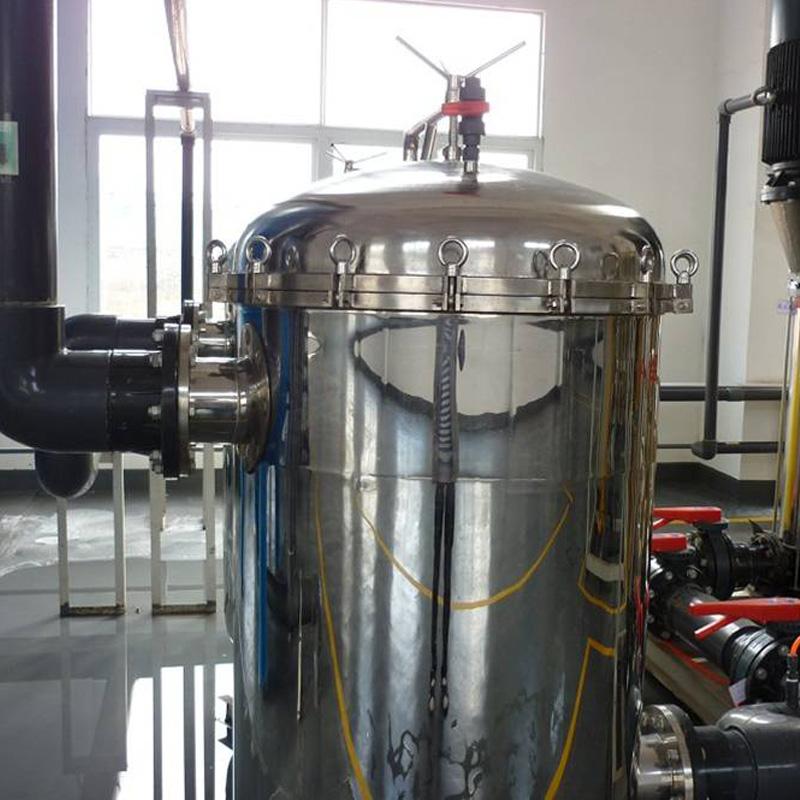水經(jīng)過精密過濾機過濾,進一步阻擋水中部分大顆粒物質(zhì)和固體懸浮物,并阻擋破碎的石英砂和活性碳顆粒物,保證出水水質(zhì)的渾濁度和色度。