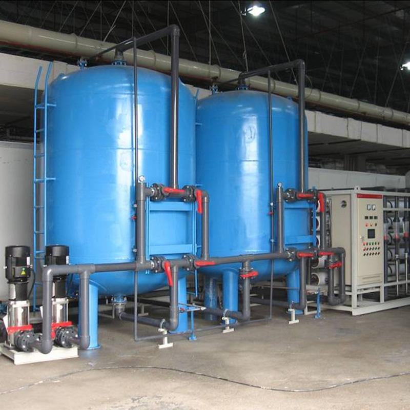 原水經(jīng)過增壓泵加壓后進入石英砂過濾器,主要去除水中的泥沙、鐵銹、紅蟲及藻類等固體物質(zhì),系統(tǒng)設(shè)置兩套石英砂過濾機,正常運行條件如下:平均過濾速度為3M/h,壓力不大于4.5kgf/cm2。內(nèi)壁籿膠,碳鋼材質(zhì)。